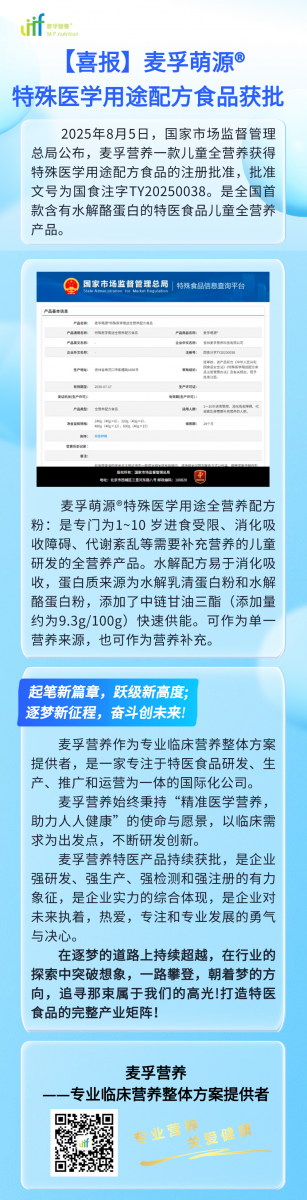 【喜报】麦孚萌源®特殊医学用途配方食品获批